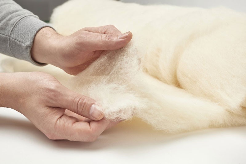 The multi-layer structureWe are using bates of wool that are wave-shaped and multi-layer arranged. This way, we can prevent overcrowding or the migration of the wool inside the product. The wool layers present a density of 150-300g/sqm, the winter duvets contain two or more wool layers.