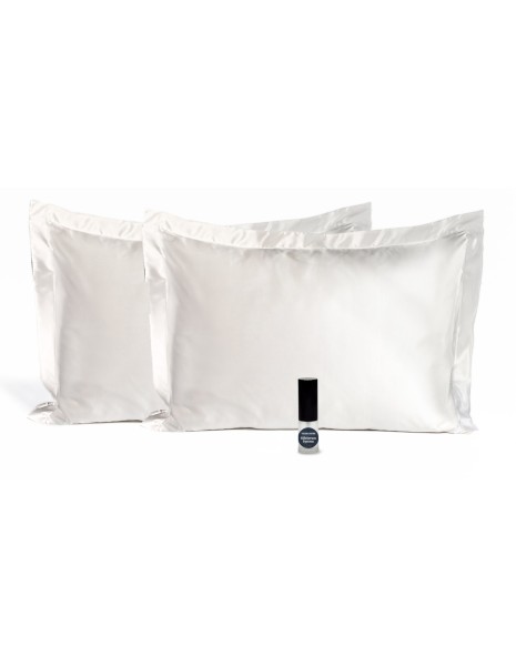We offer you a set consisting of two silk pillowcases and a 10 ml spray containing a concentrated sericin solution, sourced from Switzerland. This solution is of pharmaceutical-grade quality – 100% safe for direct skin contact and certified according to the "EU Cosmetic Legislation 1223/2009".