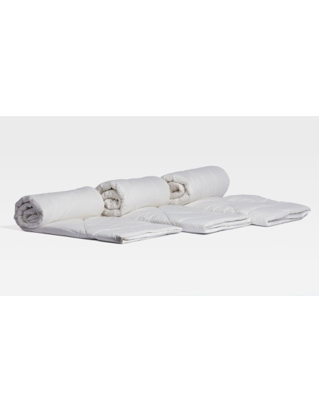 We are using bates of carded silk that are wave-shaped and multi-layer arranged. This way, we can prevent overcrowding or the migration of the silk inside the product. The silk layers present a density of 100g/sqm, the winter duvets contain three layers.